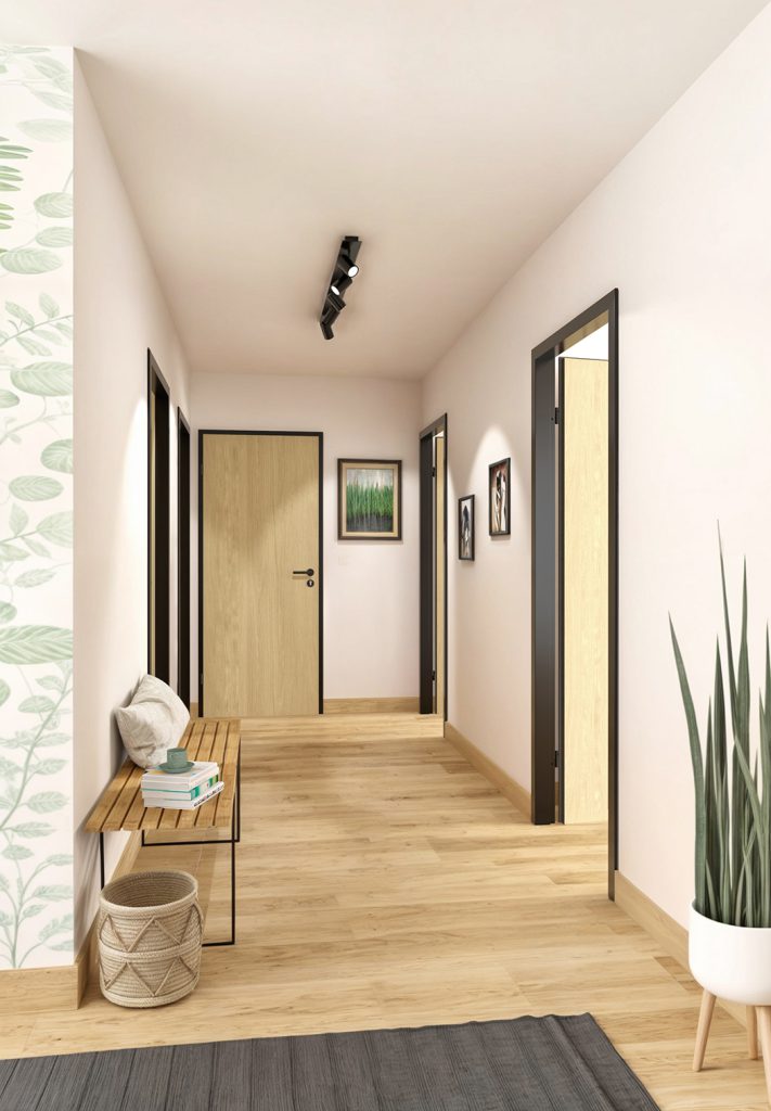 Avec son cadre noir et ses tons bois chaleureux, la porte de communication NUOVA offre une nouvelle vision de la porte et de l’habitat. à sa façon, elle propose de faire entrer la nature chez soi. Avec un design dans l’air du temps, un impact environnemental minimisé et un budget maîtrisé. Le tout, sans faire de compromis sur la qualité. Une porte de communication durable, facile à mettre en œuvre et à entretenir qui vous amène naturellement à repenser votre intérieur.