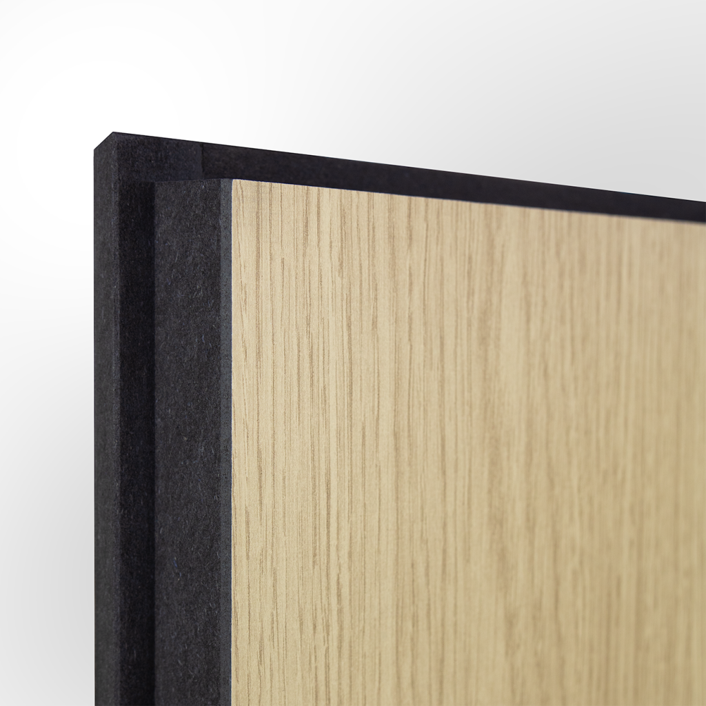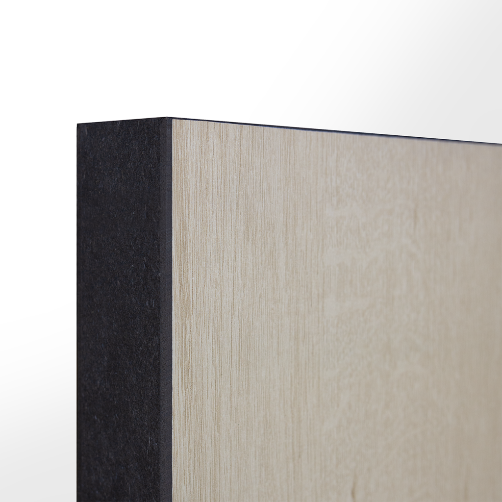 • Parements MDF hydrofuge imprimés avec vernis de protection teintés noir* dans la masse avec finition lisse ou rainurée