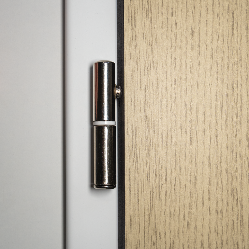 Elle s’installe indifféremment sur une huisserie de cloison métallique ou bois, avec ou sans gorge isophonique, pour porte à chant droit ou à recouvrement et peut être ajustée par rabotage si besoin.