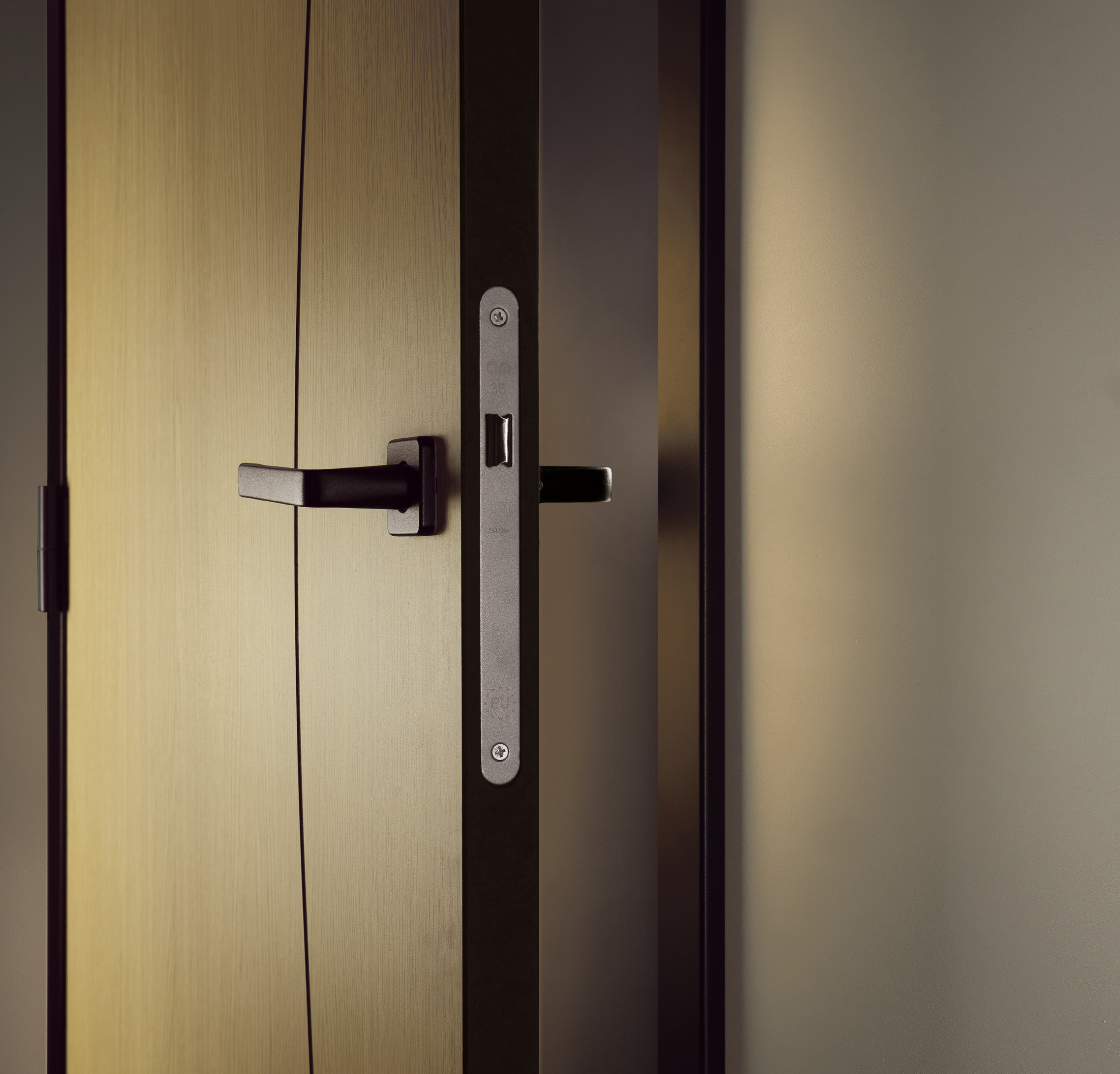 • Serrure avec finition laquée grise et pêne noir