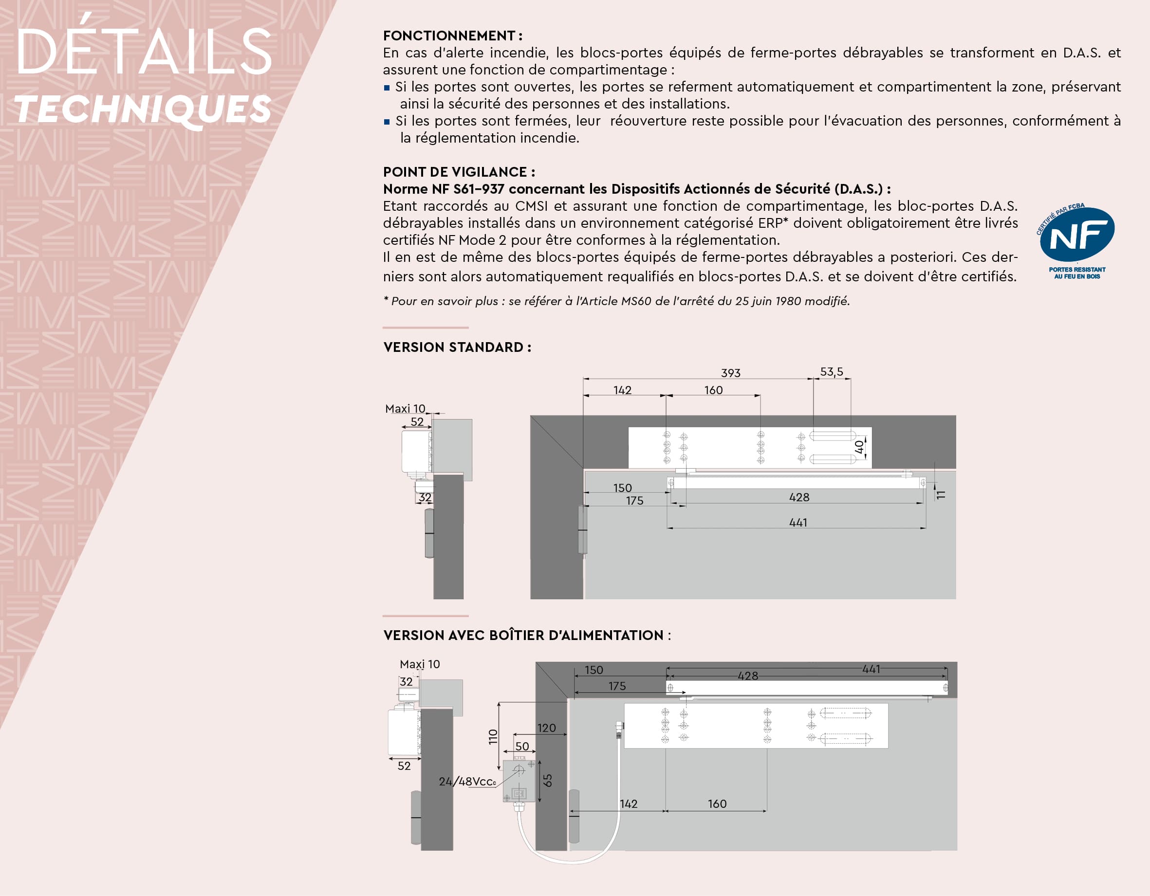 • Équipés de ferme-portes non actifs reliés à la Centrale de Sécurité Incendie.