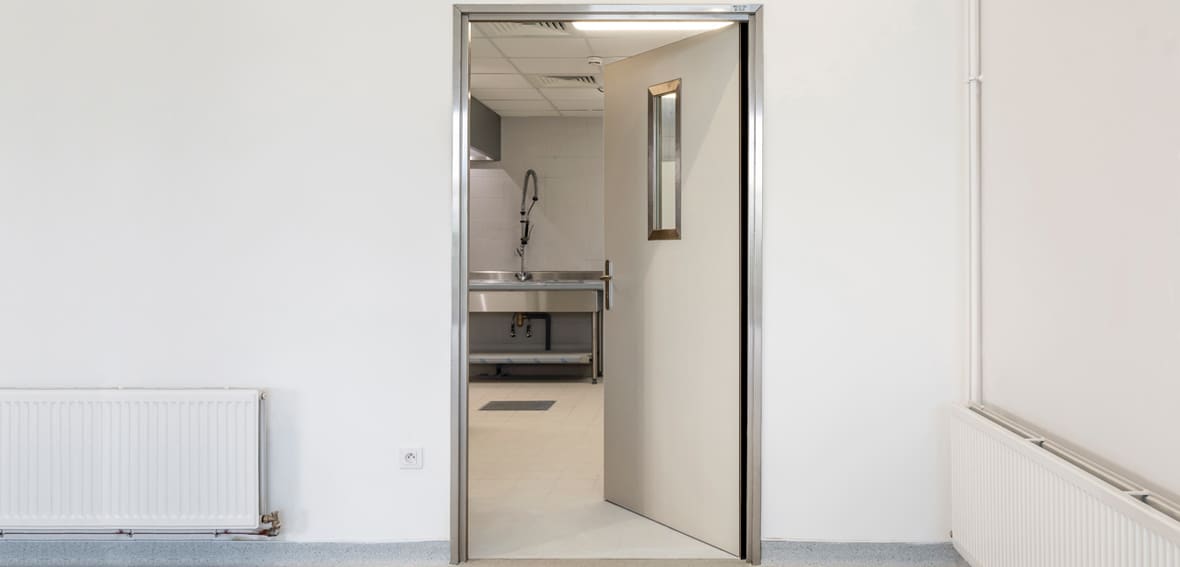 - Adaptés pour une utilisation en tant que porte de communication inter-salles ou porte de salle dans les environnements santé (cuisines, salles de bain, salles de balnéothérapie et d’hydrothérapie, etc.).