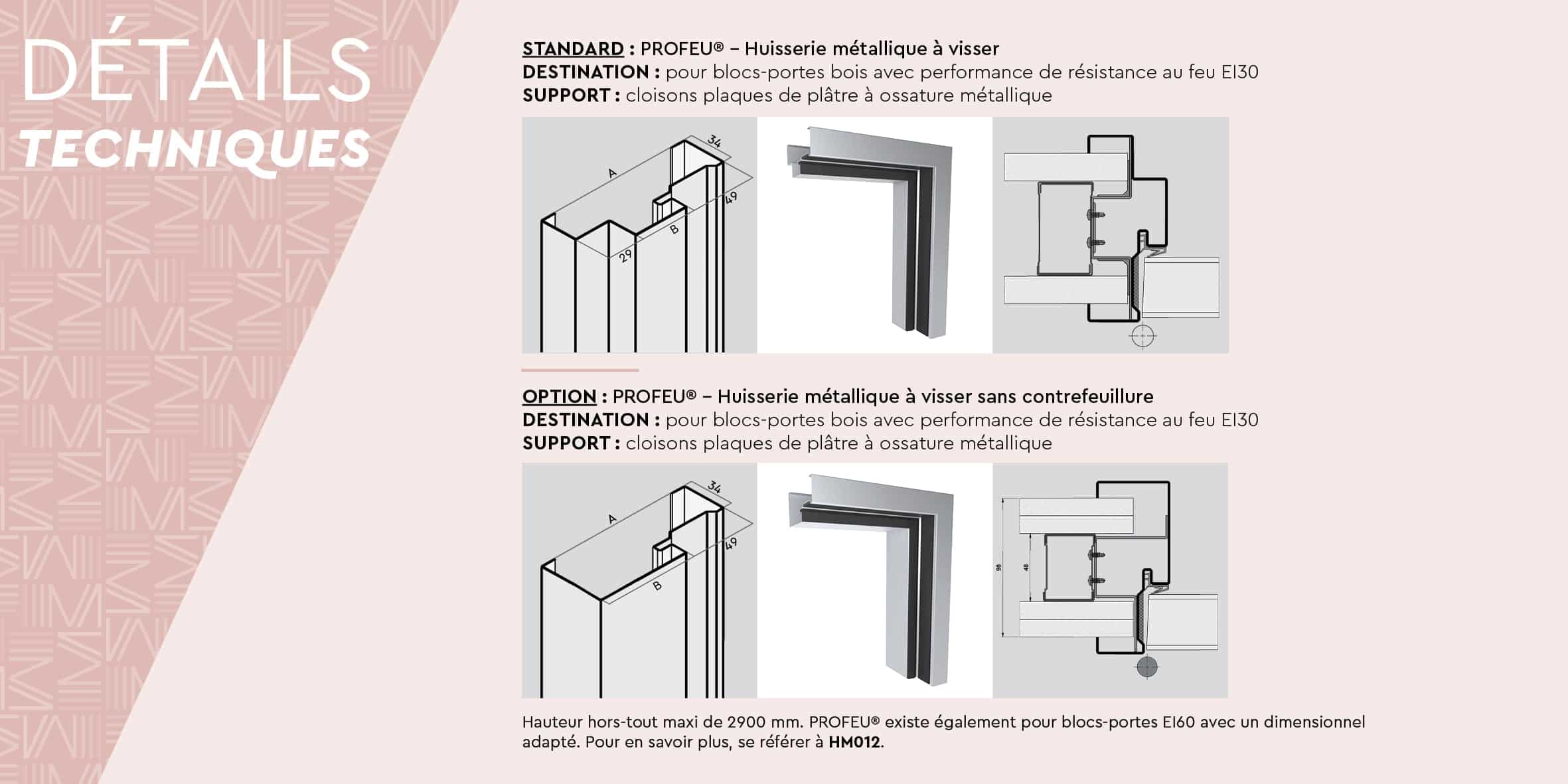 Conçue pour s’installer sur des cloisons en plaque de plâtre à ossature métallique, l’huisserie métallique PROFEU® est :