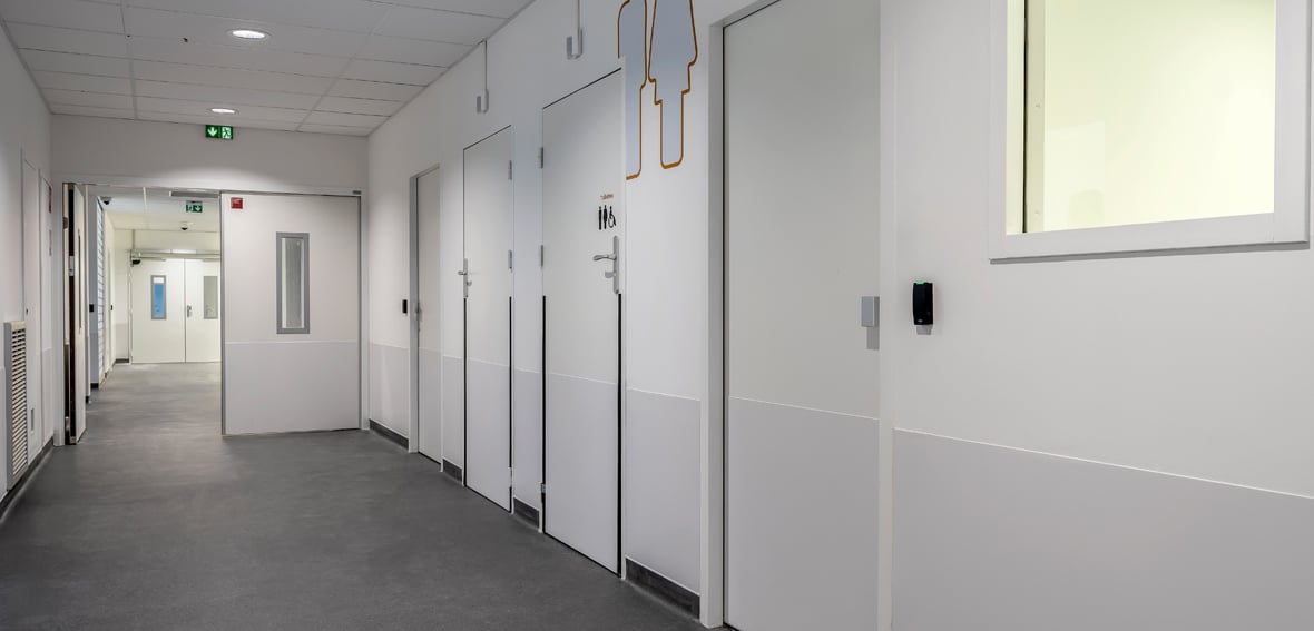 - Résistante aux chocs, marquant moins et ne se défribrant pas à la différence d’une huisserie bois, ce qui limite les risques de blessures et de prolifération bactérienne.