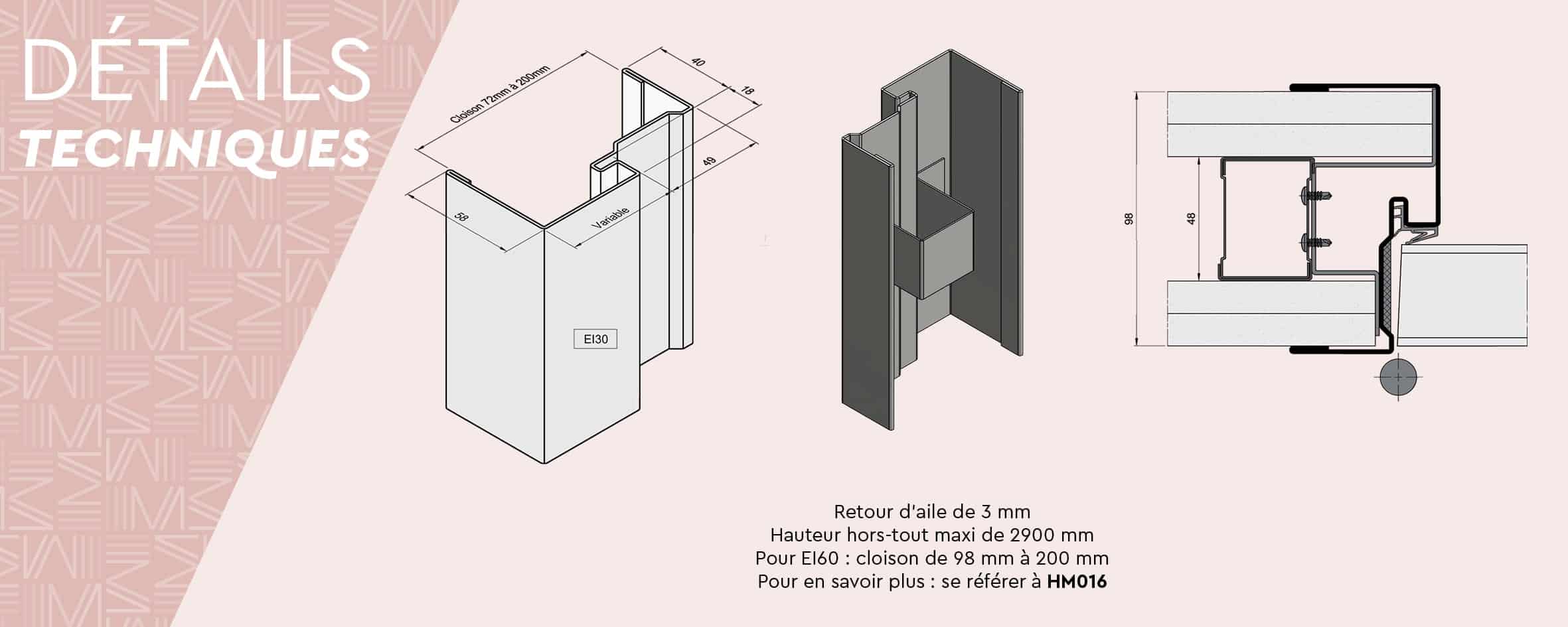 - Spécifiquement conçue pour une installation sur cloison sèche et s’installant comme l’huisserie métallique PROFEU®.