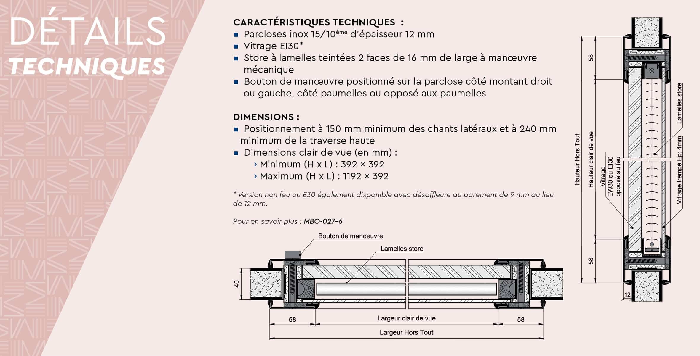 - Équipé d’un store intégré à lames orientables à manœuvre mécanique.